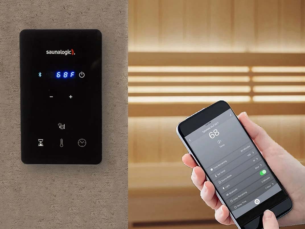 Modern design and simple to use the mobile app with functionality from anywhere. The controller has modern design and is simple to use. The glass touch screen provides a modern and extremely flexible option for the modern sauna owner. This control operates time, temperature, RGBW lighting, and can even work with our Bluetooth sound system.
