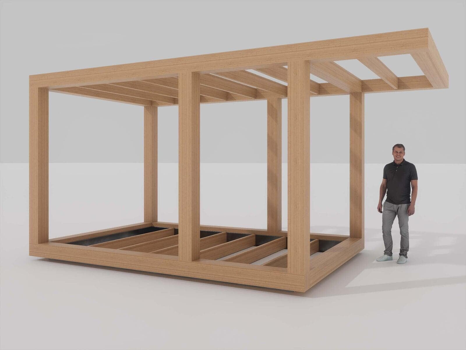 The sauna shown is our Medium Sauna with standard seating and standard finishing. Concrete tiles and outdoor shower are options.